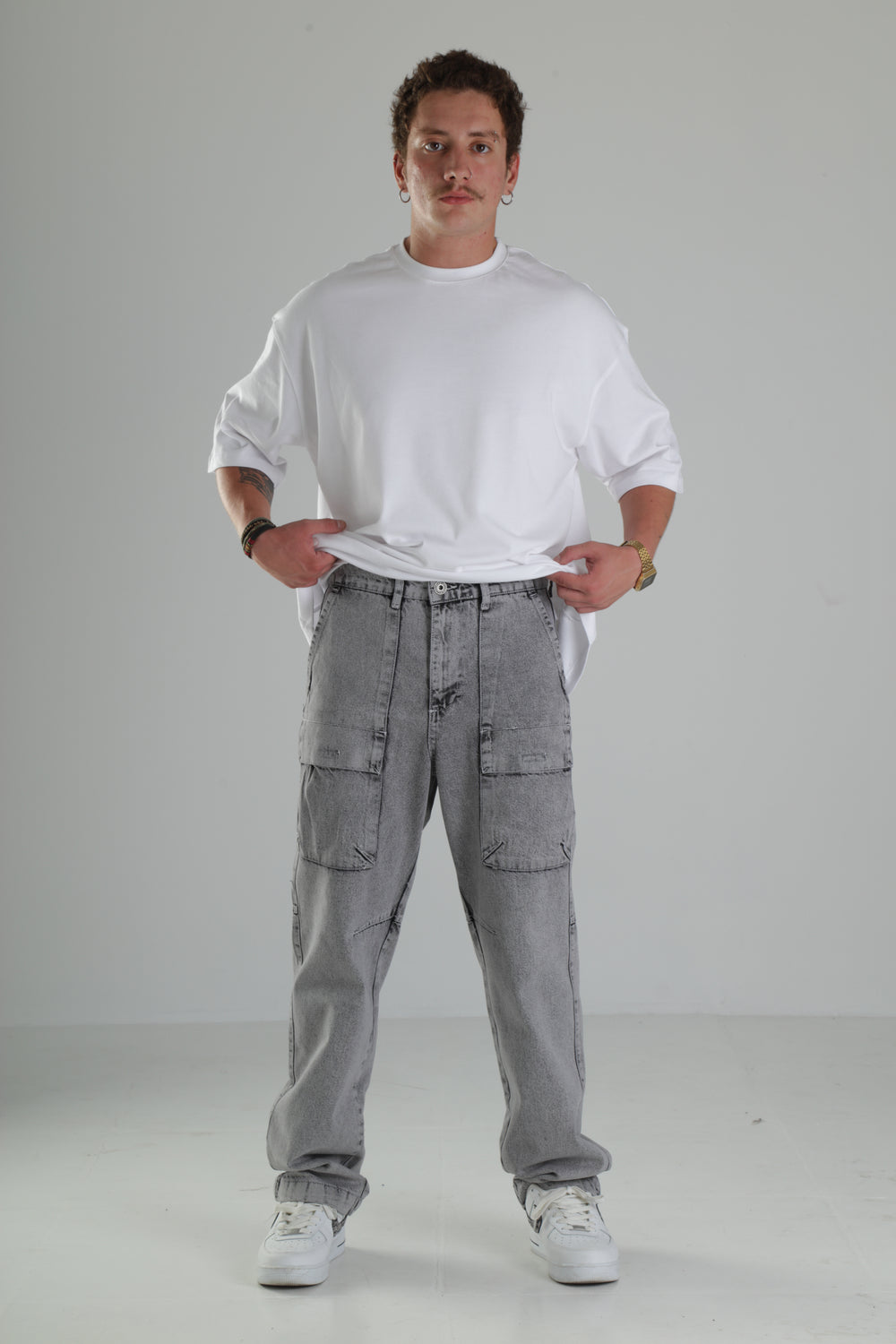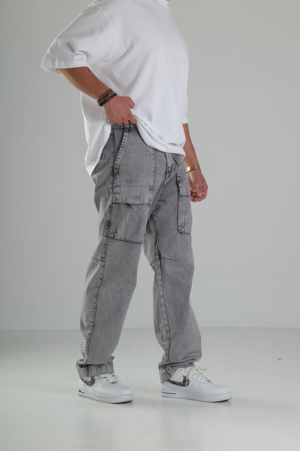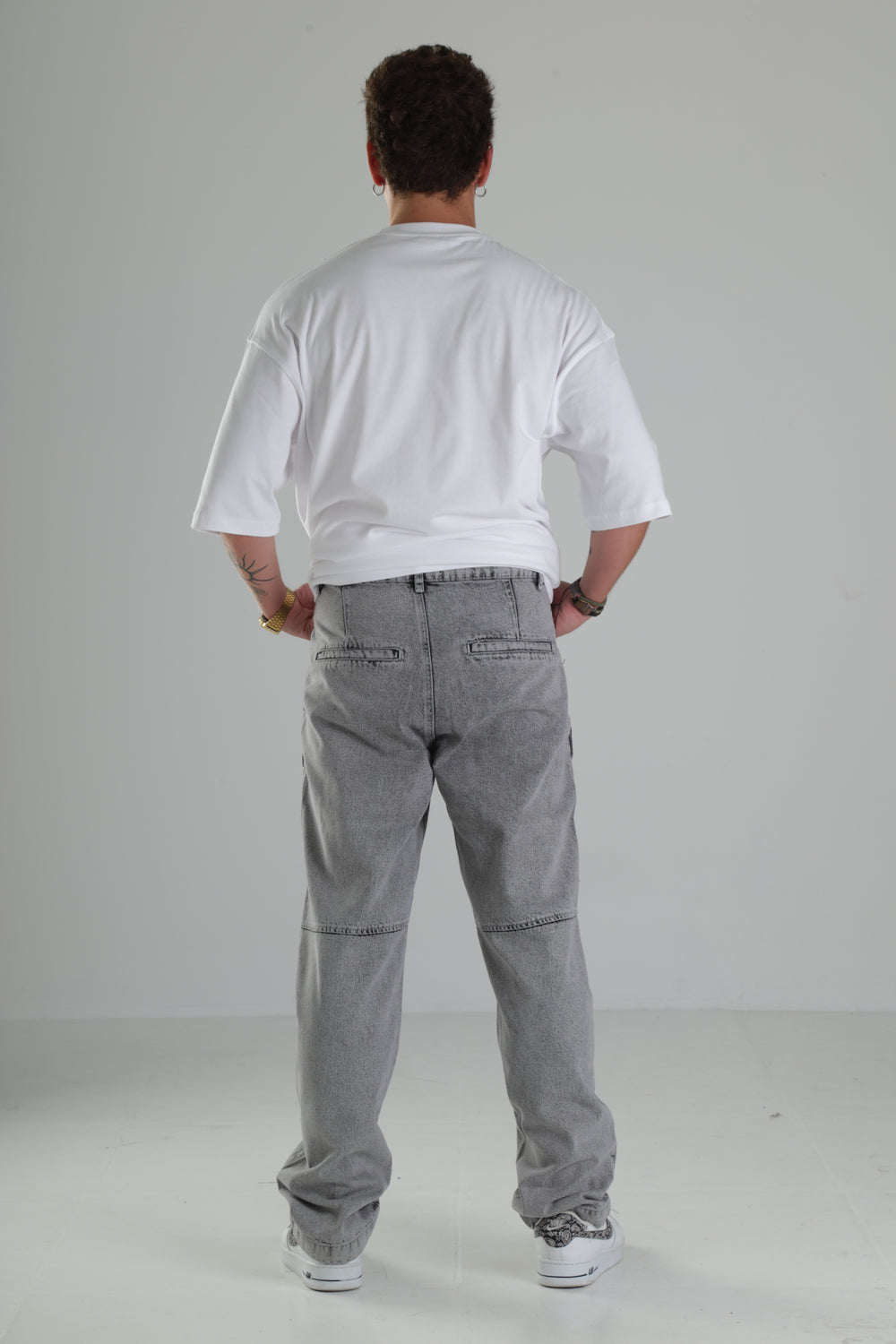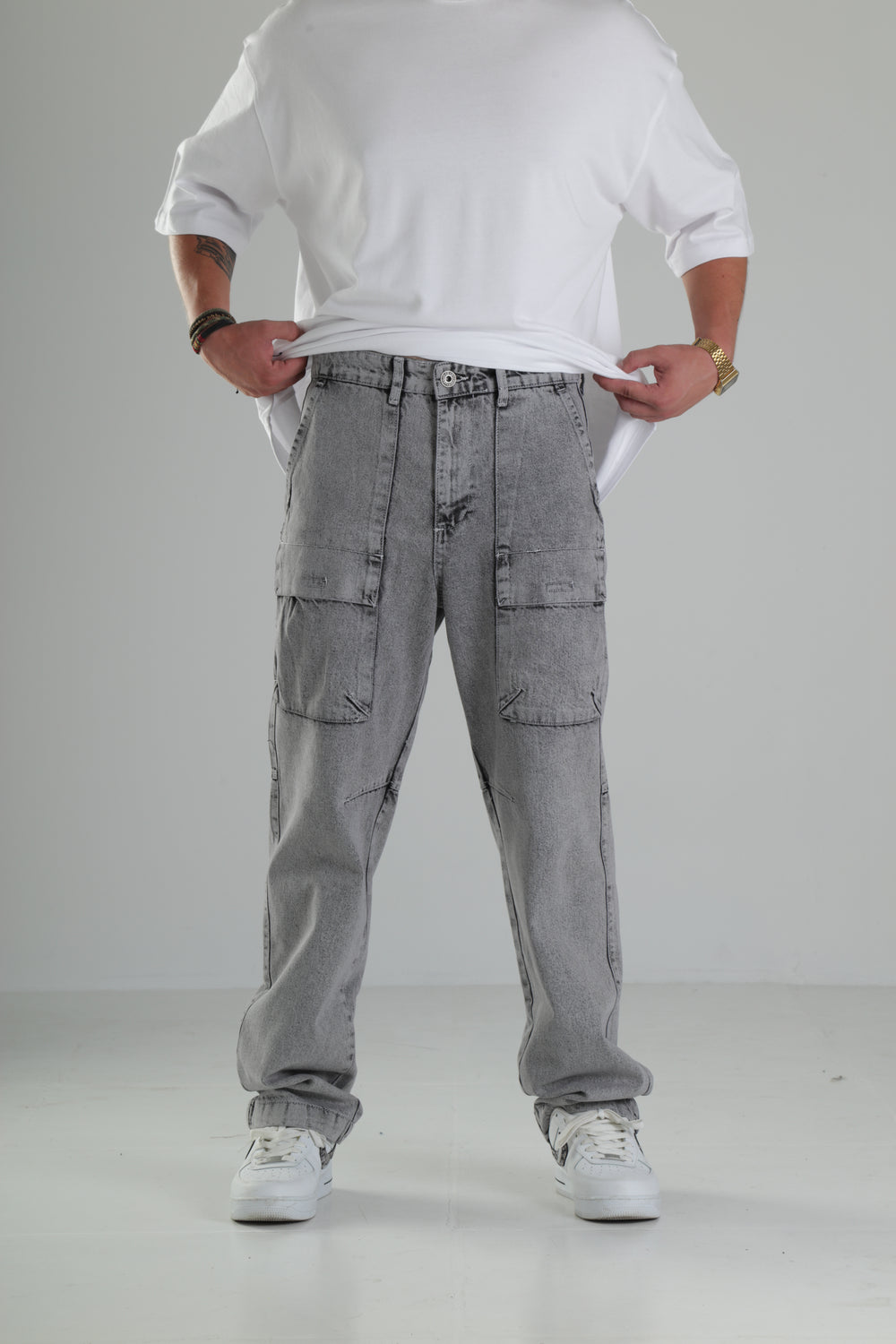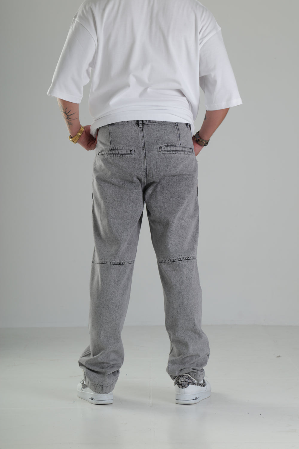 Açık Gri Düz Paça Kargo Pantolon özgün tasarımı ile modern ve şık bir görünüm sunar.