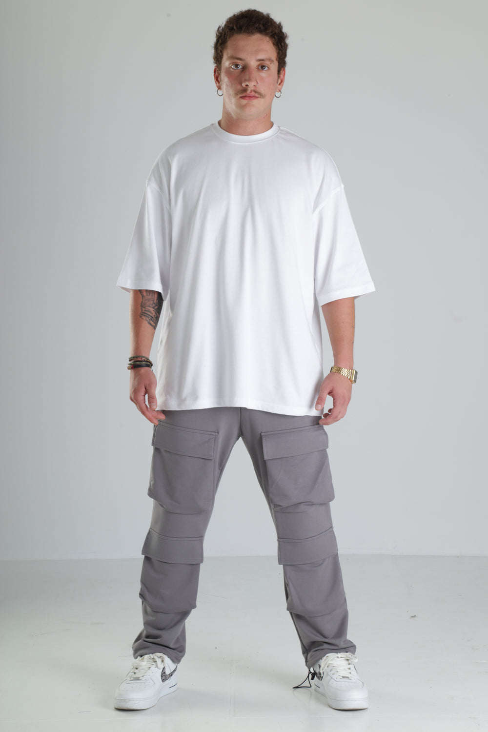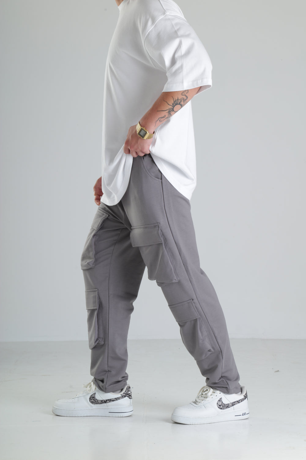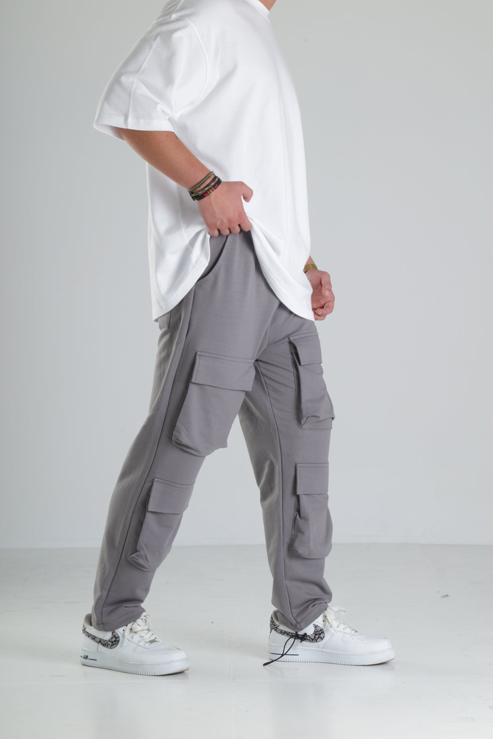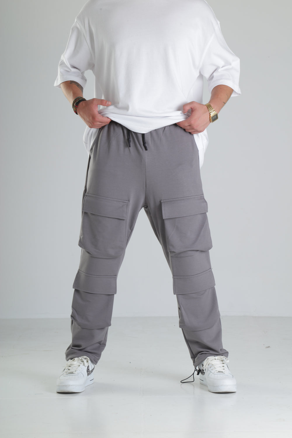 Gri Çok Cepli Kargo Pantolon özgün tasarımı ile modern ve şık bir görünüm sunar.