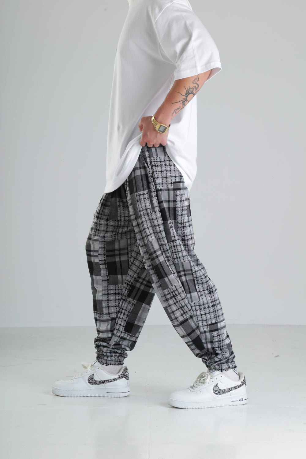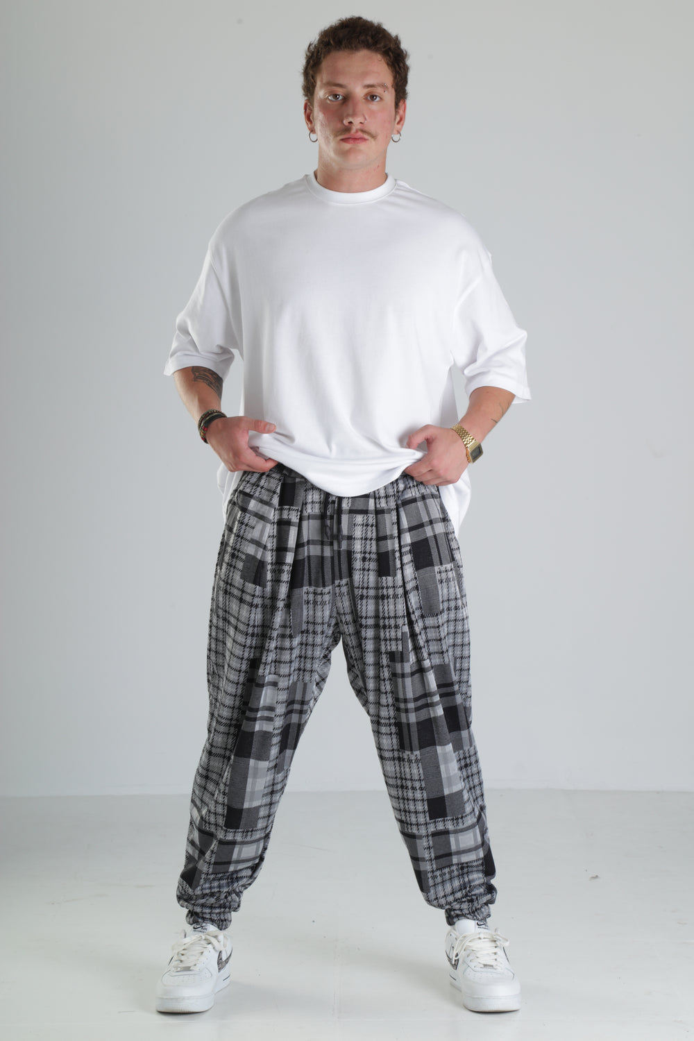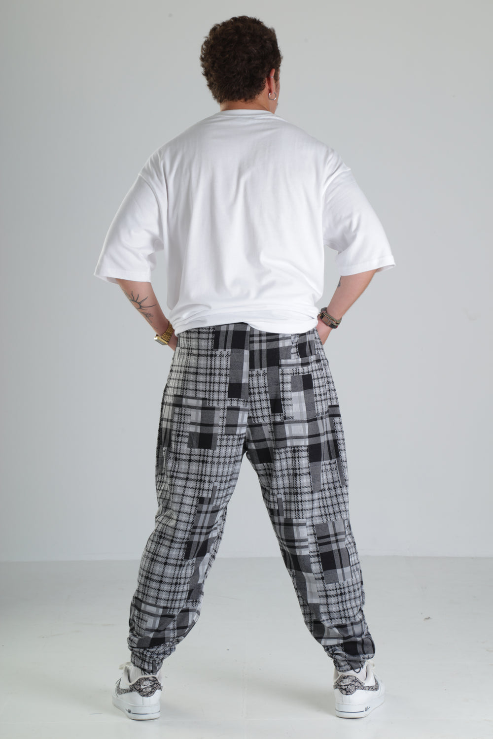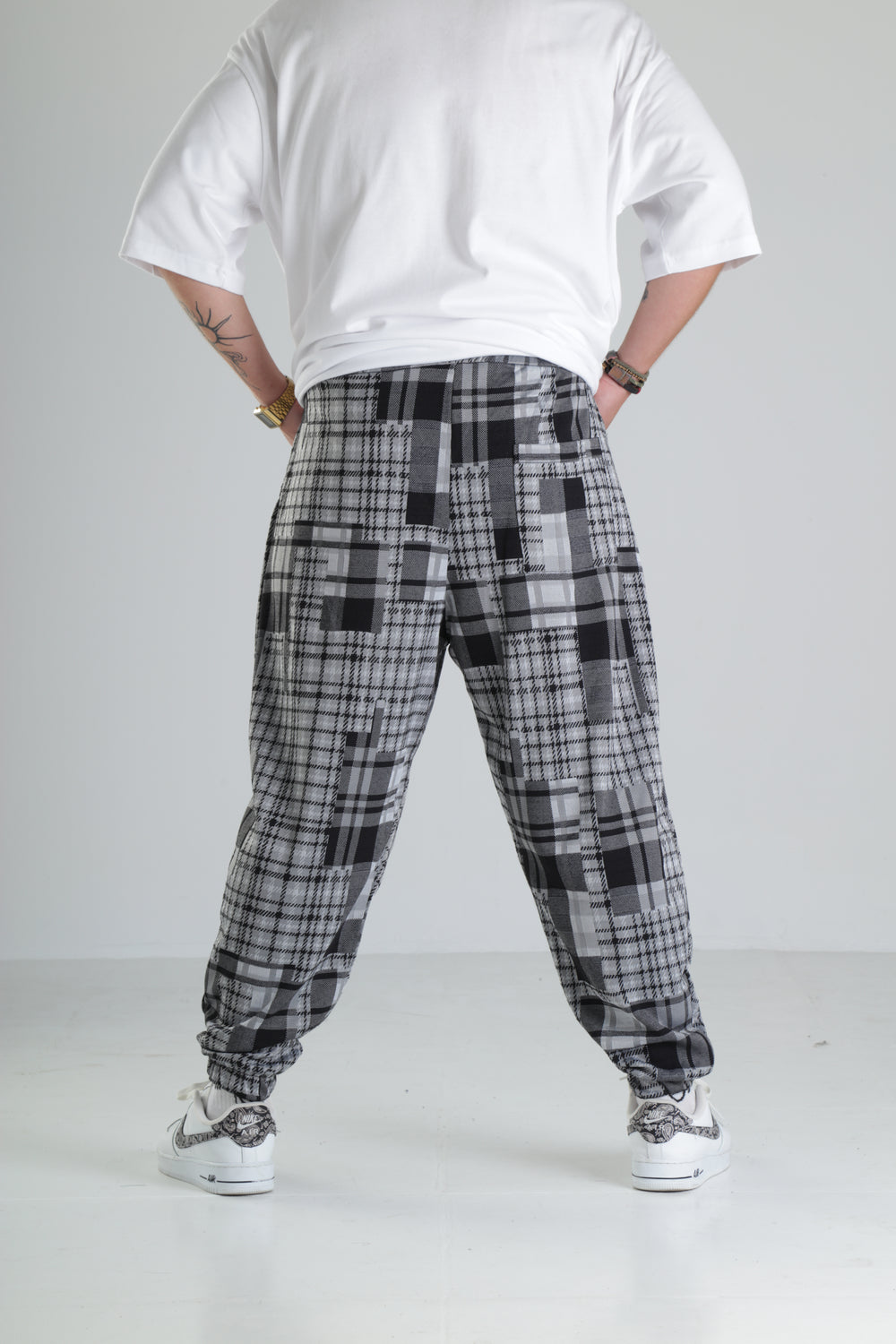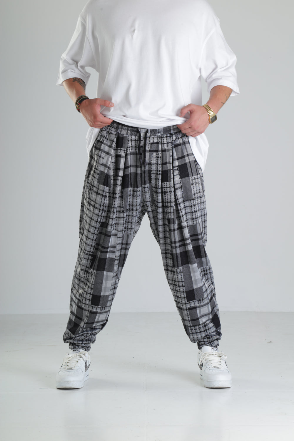 Gri Kare Desenli Paça Lastikli Jogger Pantolon özgün tasarımı ile modern ve şık bir görünüm sunar.