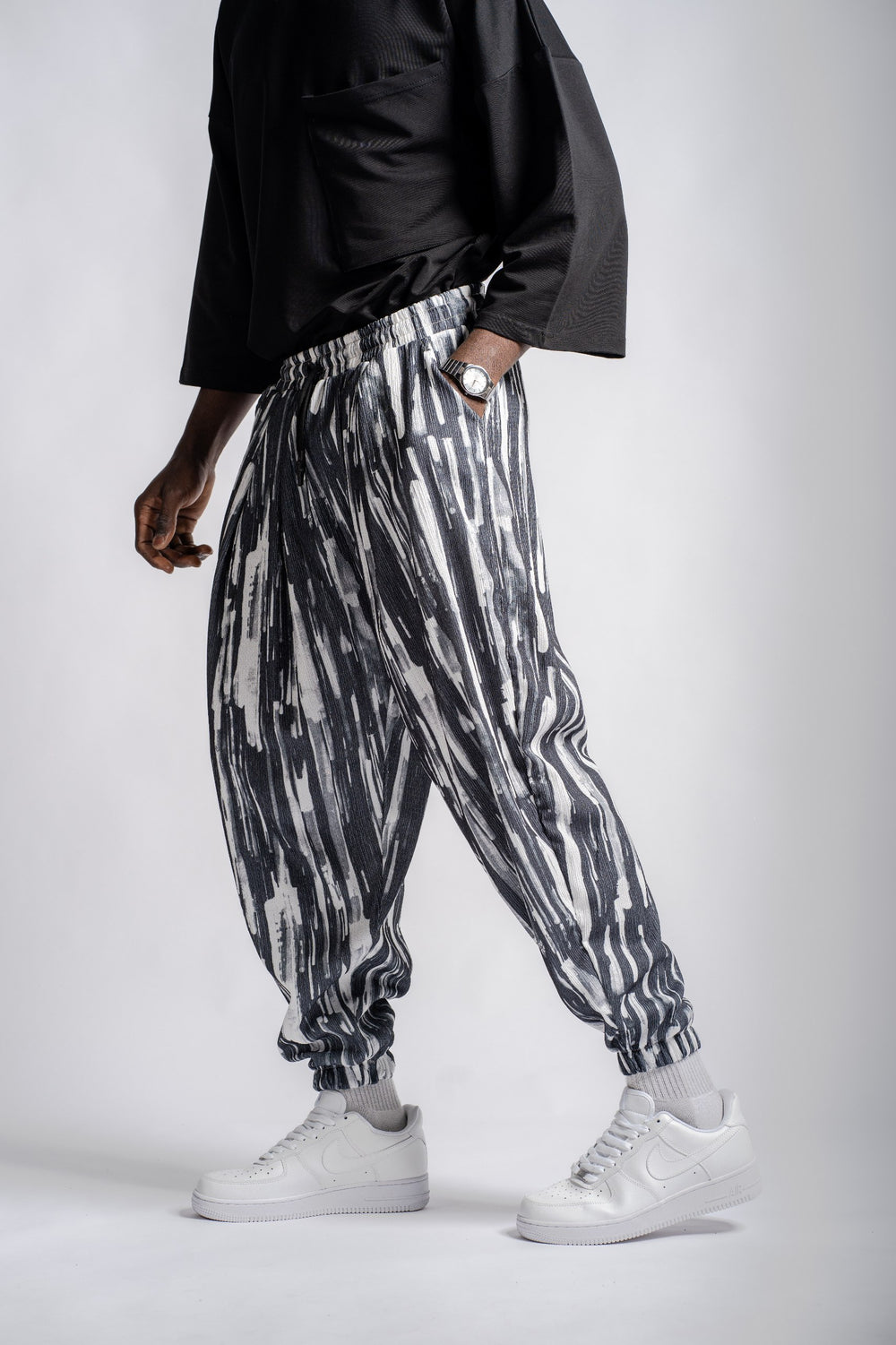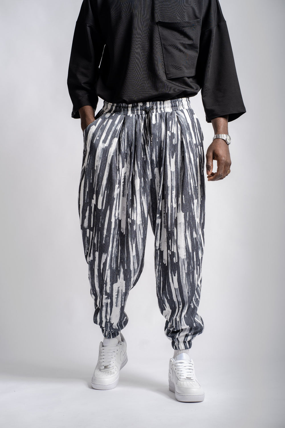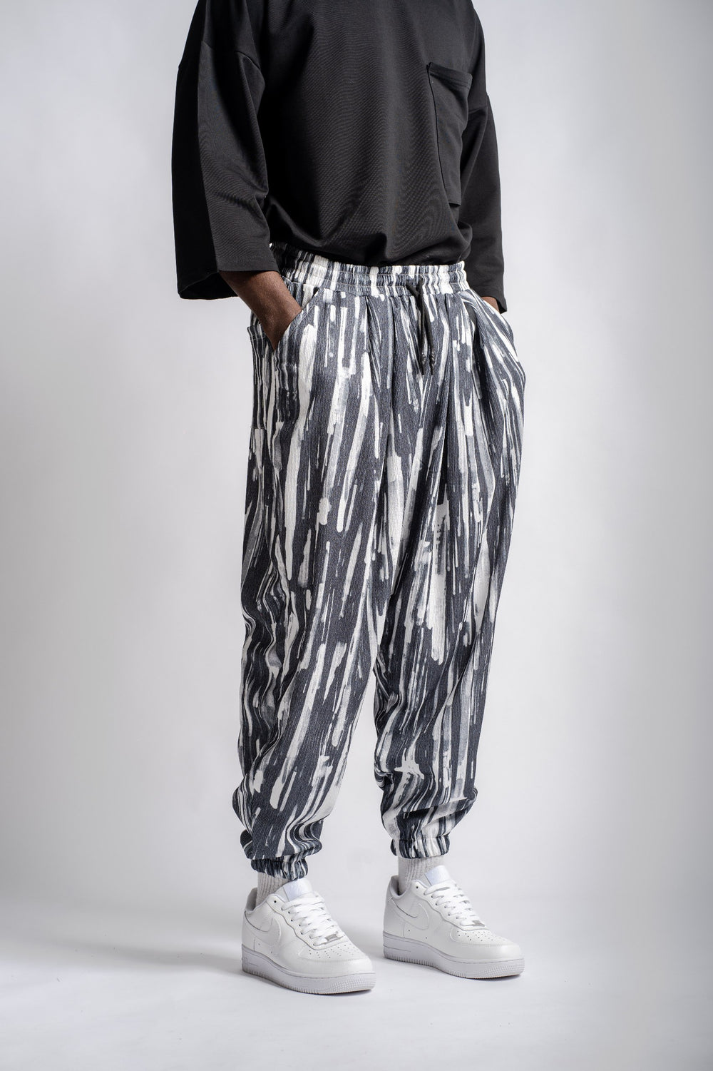 Yumuşak ve kaliteli kumaştan üretilmiştir. Ink Flow Desenli Pileli Pantolon özgün tasarımı ile modern ve şık bir görünüm sunar.