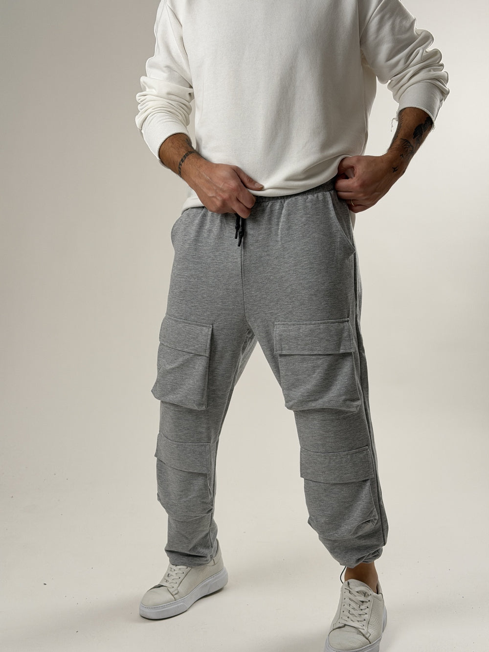 Light Grey Büzgülü Cepli Jogger Pantolon özgün tasarımı ile modern ve şık bir görünüm sunar.