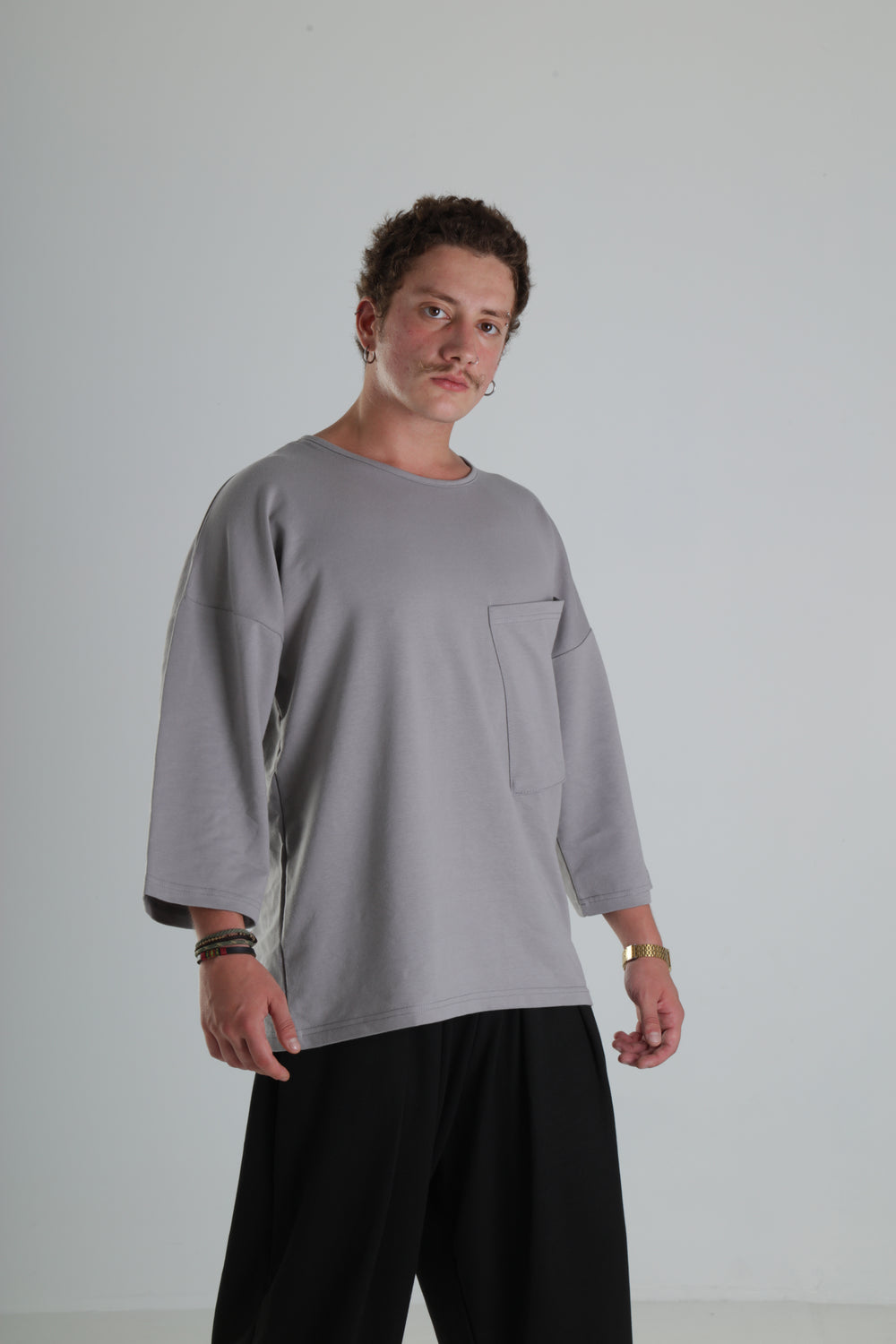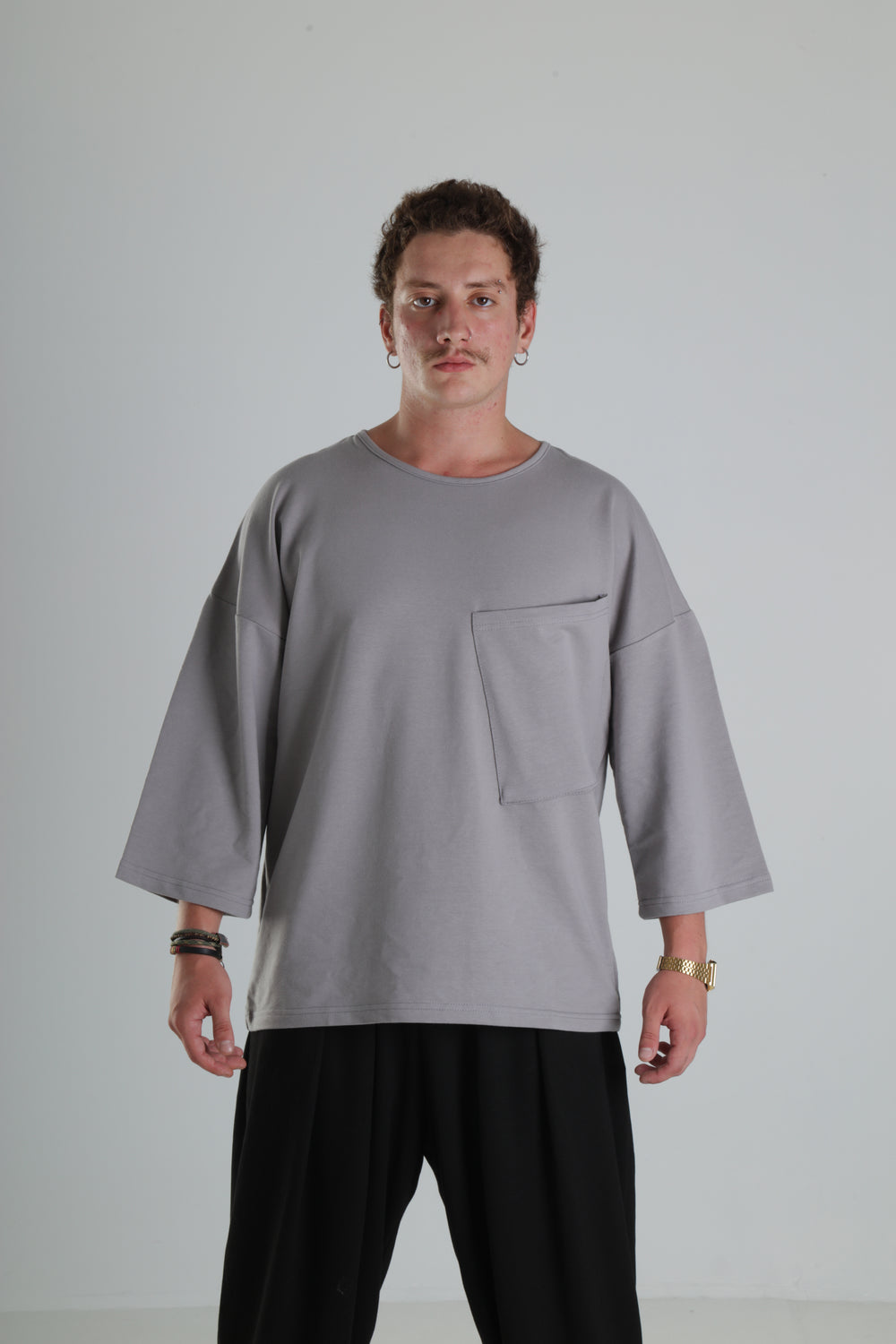 Oversize Cepli T-Shirt - Gri özgün tasarımı ile modern ve şık bir görünüm sunar.