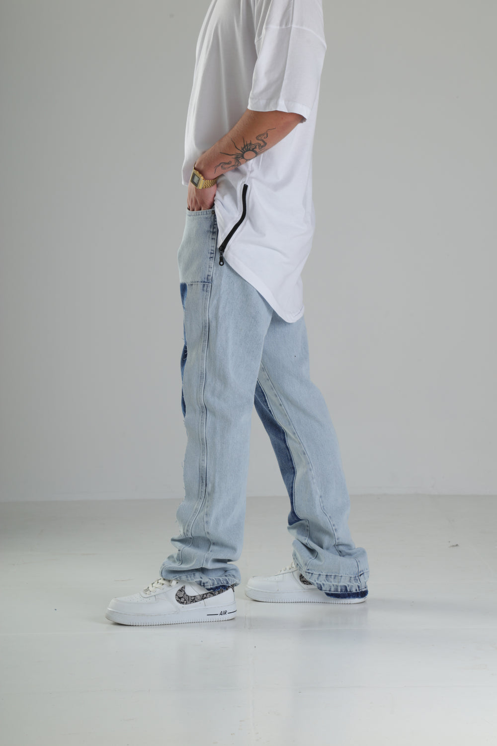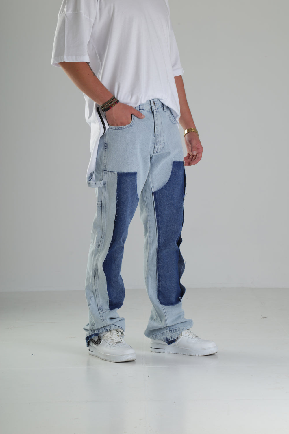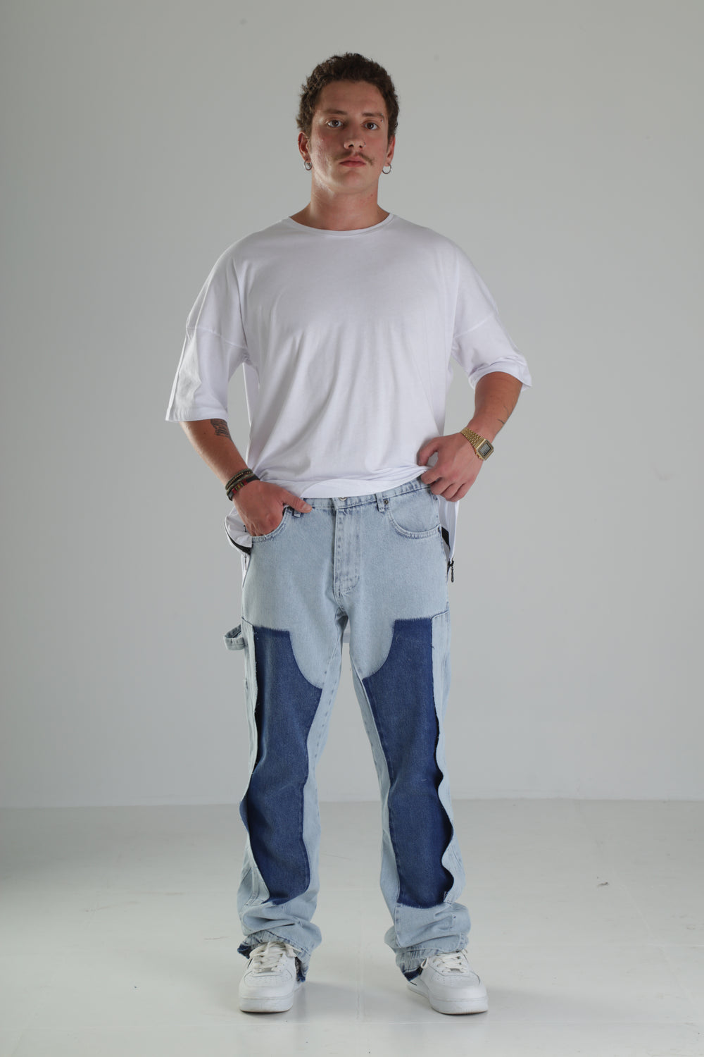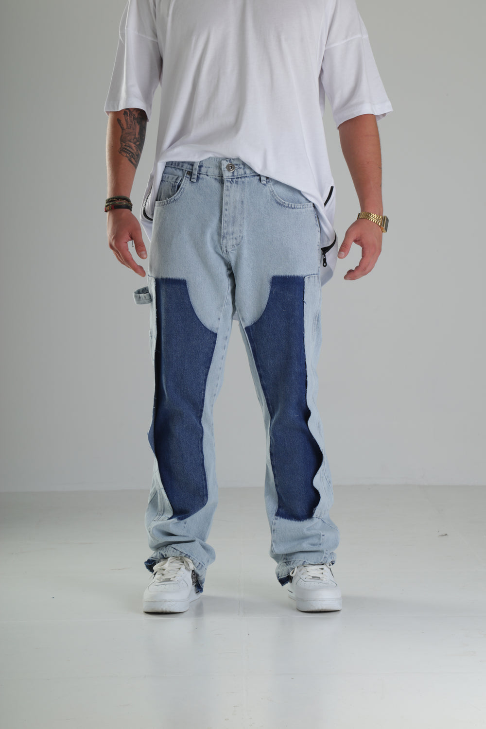 Premium Kalite İki Renk Patchwork Baggy Pantolon özgün tasarımı ile modern ve şık bir görünüm sunar.