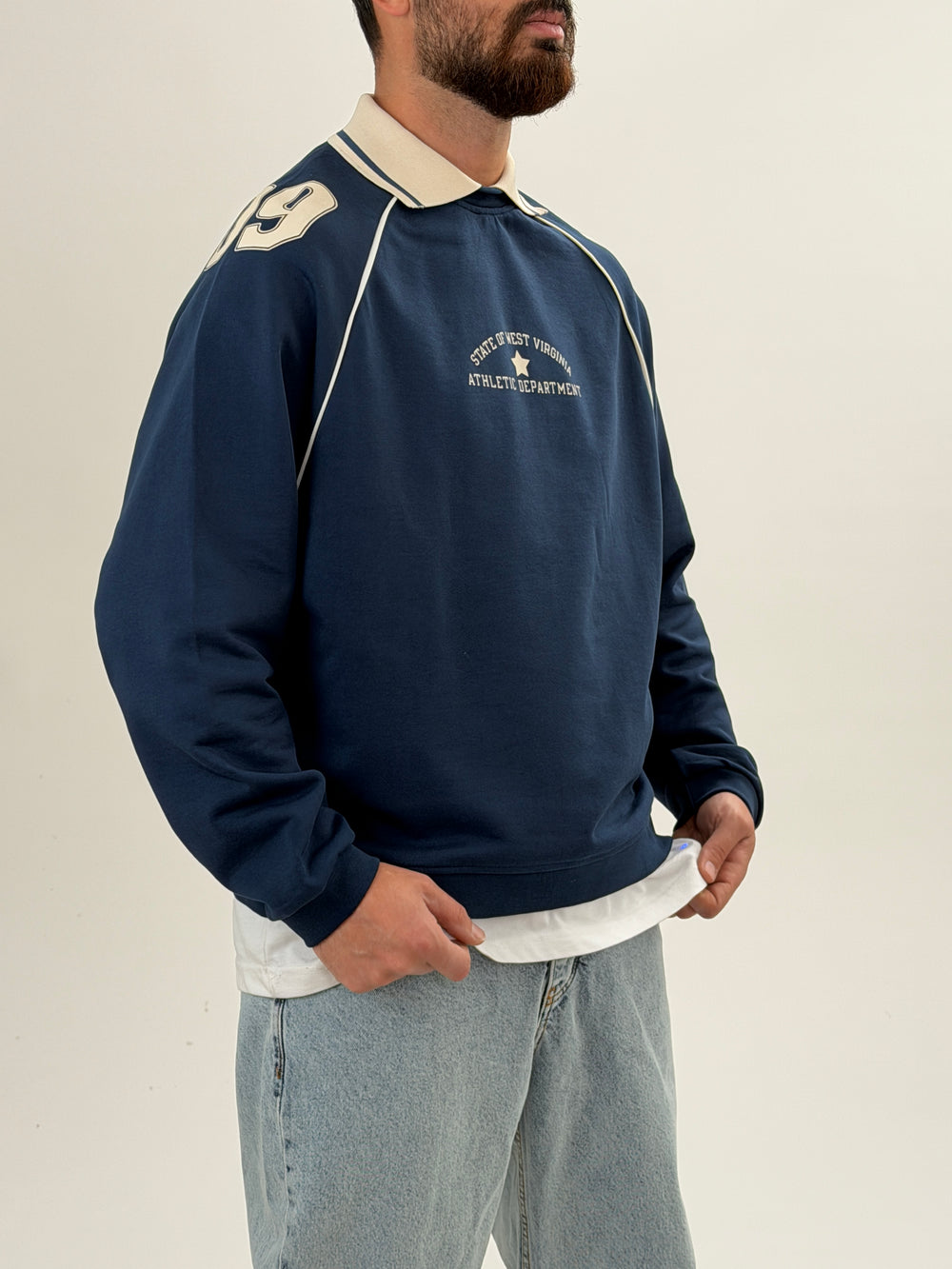 Retro Athletic Lacivert Sweatshirt özgün tasarımı ile modern ve şık bir görünüm sunar.