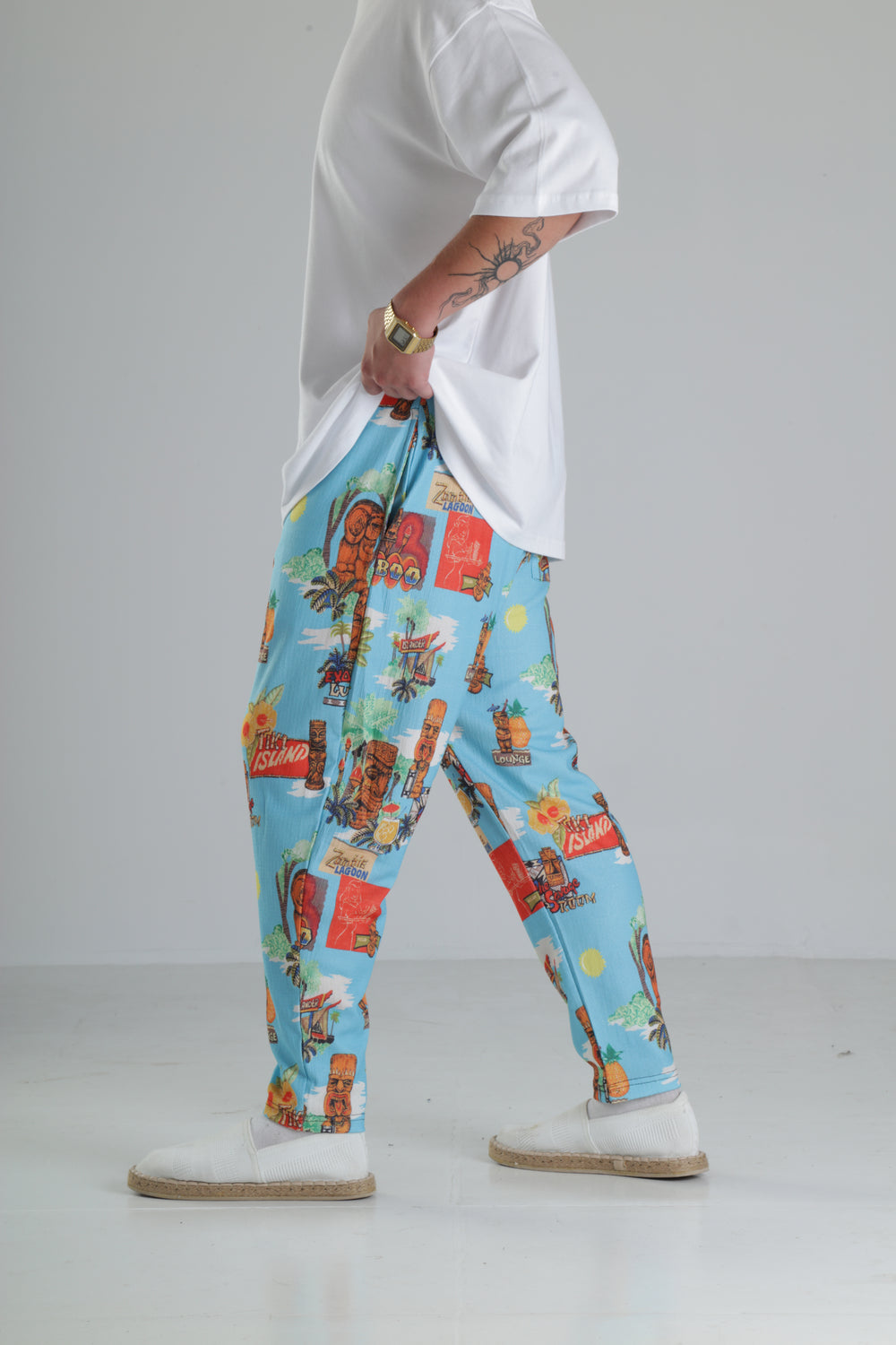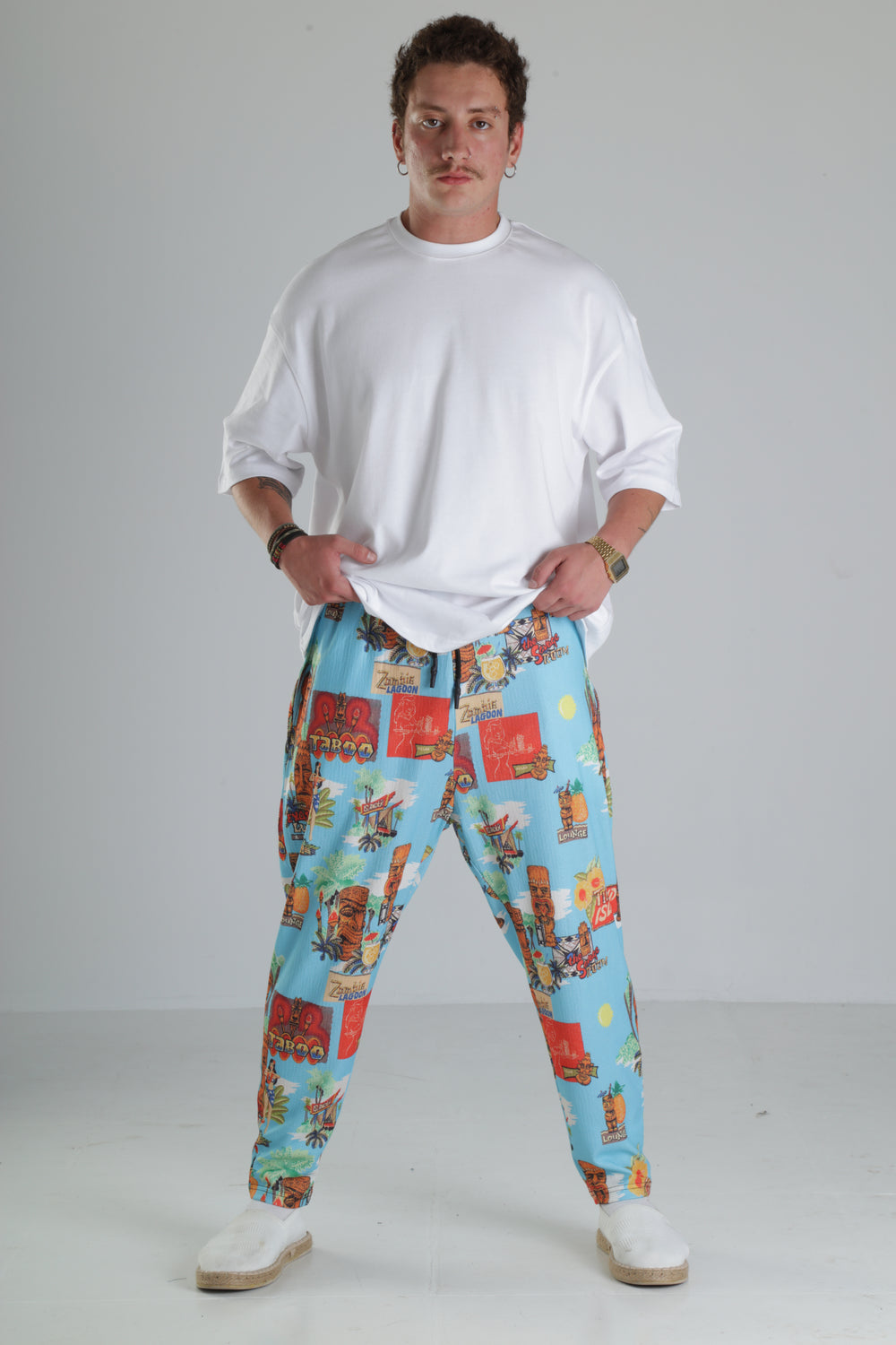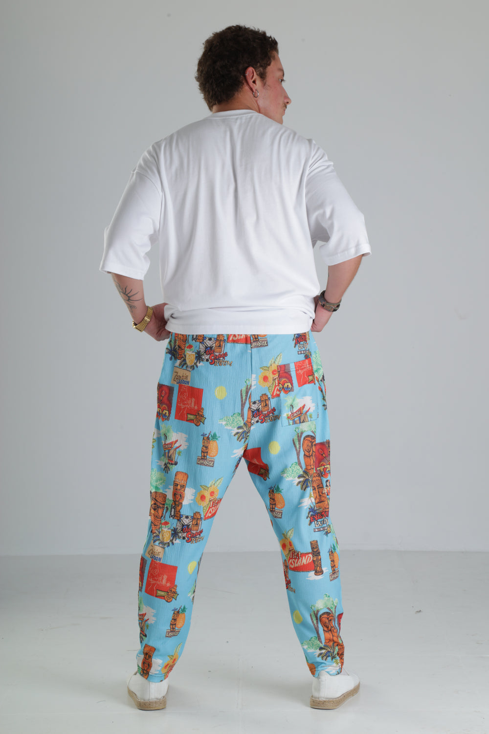 Tropikal Desenli Baggy Pantolon özgün tasarımı ile modern ve şık bir görünüm sunar.