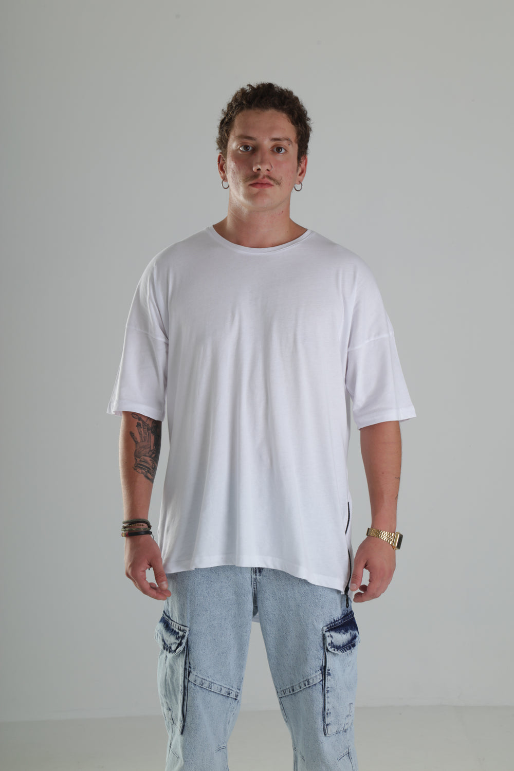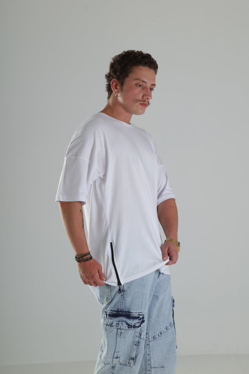 Yan Fermuar Detaylı Oversize T-Shirt - Beyaz özgün tasarımı ile modern ve şık bir görünüm sunar.